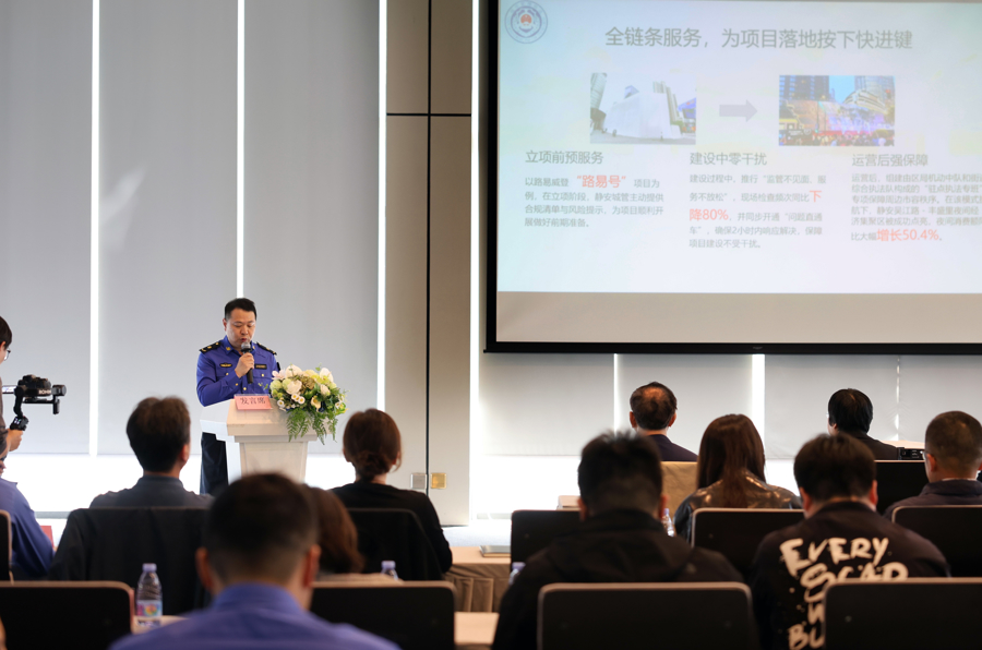 静安区城管执法局局长简军介绍:“在立项阶段,我们主动提供合规清单与风险提示;建设过程中,推行‘监管不见面、服务不放松’,现场检查频次同比下降80%,并同步开通‘问题直通车’,确保2小时内响应解决;运营后,我们还组建了由区局机动中队和街道综合执法队构成的驻点执法专班,保障周边市容秩序。”在这一模式护航下,静安吴江路-丰盛里夜间经济集聚区被点亮,串联起“路易号”、张园、茂名北路等优质资源,夜间消费额同比大幅增长50.4%。