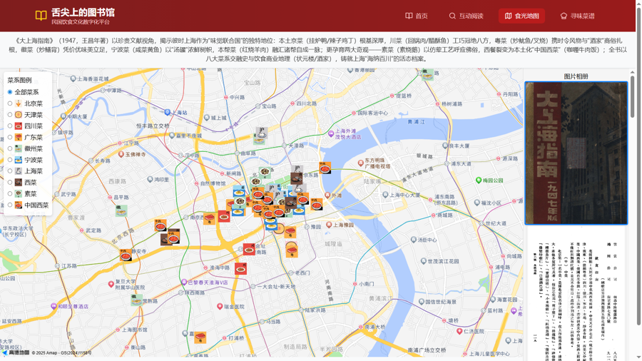 最佳创意奖《舌尖上的图书馆》则是一个AIGC支持的上海近现代饮食文化数字化平台,利用智能可视化、时空知识图谱和交互阅读等技术,将古籍中的菜谱与生活场景转化为可读、可视、可互动的体验,构建时空关联的知识网络,为研究与文创提供新的参考与素材。