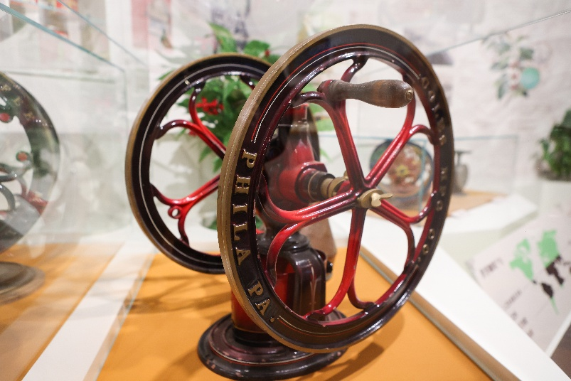 人们对咖啡不断高涨的热情也推动了设备的更新换代。展出的双轮咖啡研磨机诞生于19世纪,采用毛刺部件进行研磨以确保颗粒均匀。令人瞩目的双轮不仅带有装饰性,也确保了咖啡豆的研磨效率。