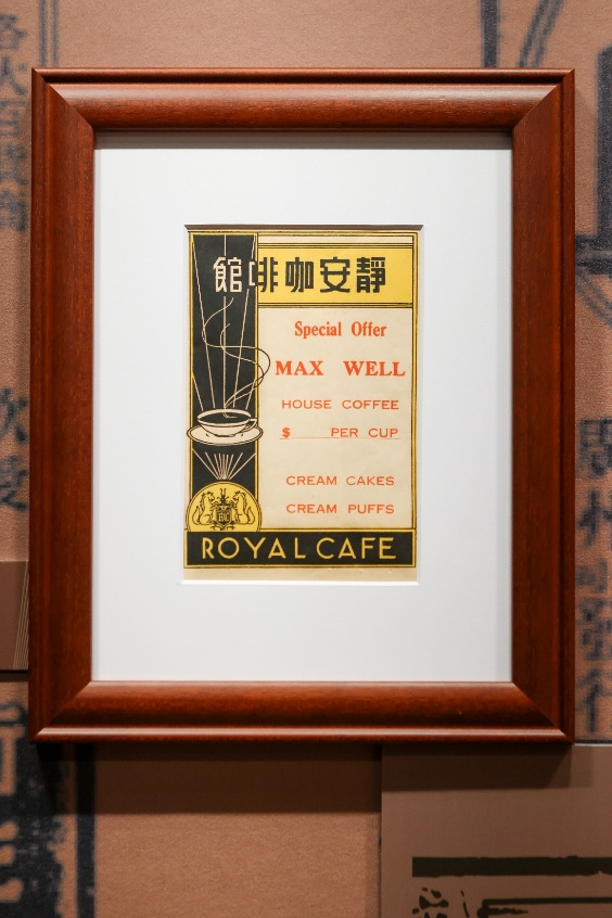 咖啡有传承,展出中一幅近代静安咖啡馆的广告,这则广告中的“MAX WELL HOUSE COFFEE”指的是麦斯威尔咖啡,它曾是不少上海咖啡馆和百货公司的“座上宾”。
