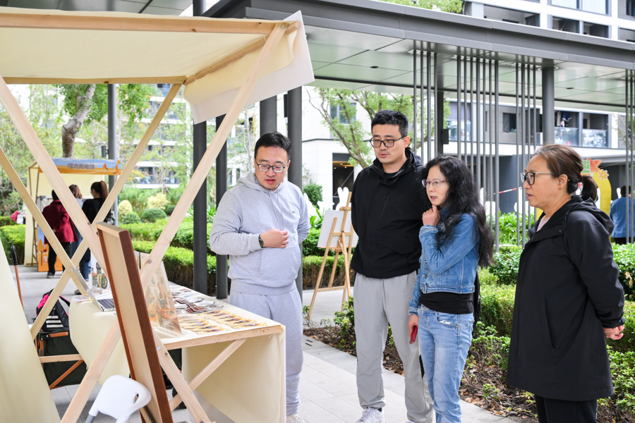 以“公益温情、非遗匠心、青年创业、科技互动”为核心的活力市集区,成为半淞“零距离家园”的生动缩影——公益领养、非遗手工、游戏互动、AI体验、拍照打卡等十余个特色摊位前人头攒动,热闹非凡。此外,市集还特邀多家便民商户入驻,把“零距离”服务送到居民家门口。