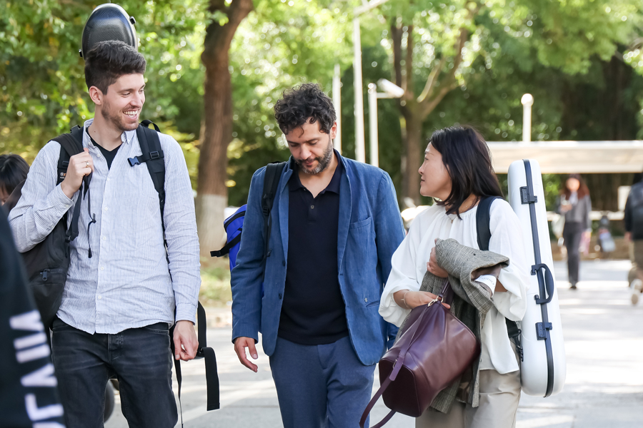 宇蕊用长笛吹奏了极具意境的中国作品《渔舟唱晚》,别致的东方韵味和中国式浪漫让人沉醉。长笛演奏家詹卢卡·坎波同样提出了要把乐声送出去这一建议。从围绕气息控制、弓速均匀度到口型与音准配合等细节,大师和学子同台,悉心地逐一点拨,让学生受益匪浅。