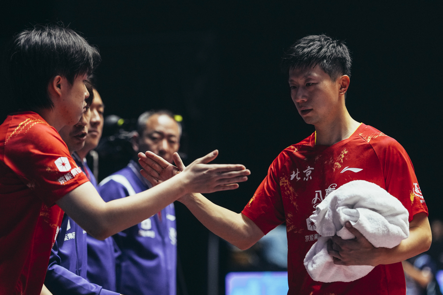 站在比自己分别小17岁和12岁的黄友政、王楚钦身边,身为“领头大哥”的马龙却笑着摆摆手:“现在,是他们带着我。”六战全运,这是他的收官之战,亦是最特别的一战。昨晚,当他亮相澳门银河综艺馆时,一招一式间依旧透着20年前初登赛场的少年意气,劲头十足。