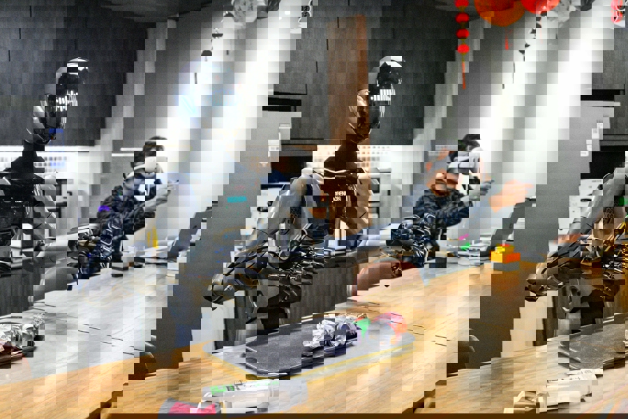 擎朗智能具身智能实验室负责人邓强文表示,他们将展示一手收纳餐具的“绝活”,这并不容易,机器人不可能像人一样去洗手,面对沾有番茄酱的餐巾纸,它必须识别出可以拿取的部分,而对于不同材质的杯子,它需要知道用多大力气让水不洒出来。